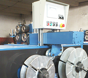 Makine kaynak konstrüksiyondan güçlü bir şaseye sahiptir. Kangal kafaları döner ana flanş üzerine konsol şeklinde monte edilmiştir. Birinci kangal kafası dolunca ana flanş emniyet pimi, ayak pedalı ile açılarak ana flanş döndürülür. İkinci kangal sarılırken birinci kangal bağlanır ve dışarı alınır.Start-stop butonu, hız potansiyometresi ve dijital metraj ön panel üzerindedir. Dijital metrajdan gelen birinci sinyal ile sarma hızı yavaşlar, ikinci sinyalde elektromagnetik frenle kafa ani olarak durdurulur.Kangal flanşları alüminyumdur ve kolay sökülüp takılabilir.