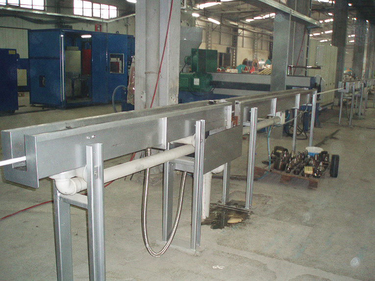Kablo üretiminde kullanılan su kanallarımız ekstruder kapasitesine ve imalatı yapılacak kablolara uygun olarak boyları ve soğutma hesapları yapılarak uygun tanklarımız 304 kalite paslanmaz sacdan imal edilmektedir. Kablonun çevresinde eşit soğutma yapılarak kablonun düzensiz üretilmesinin önüne geçilmiştir.
